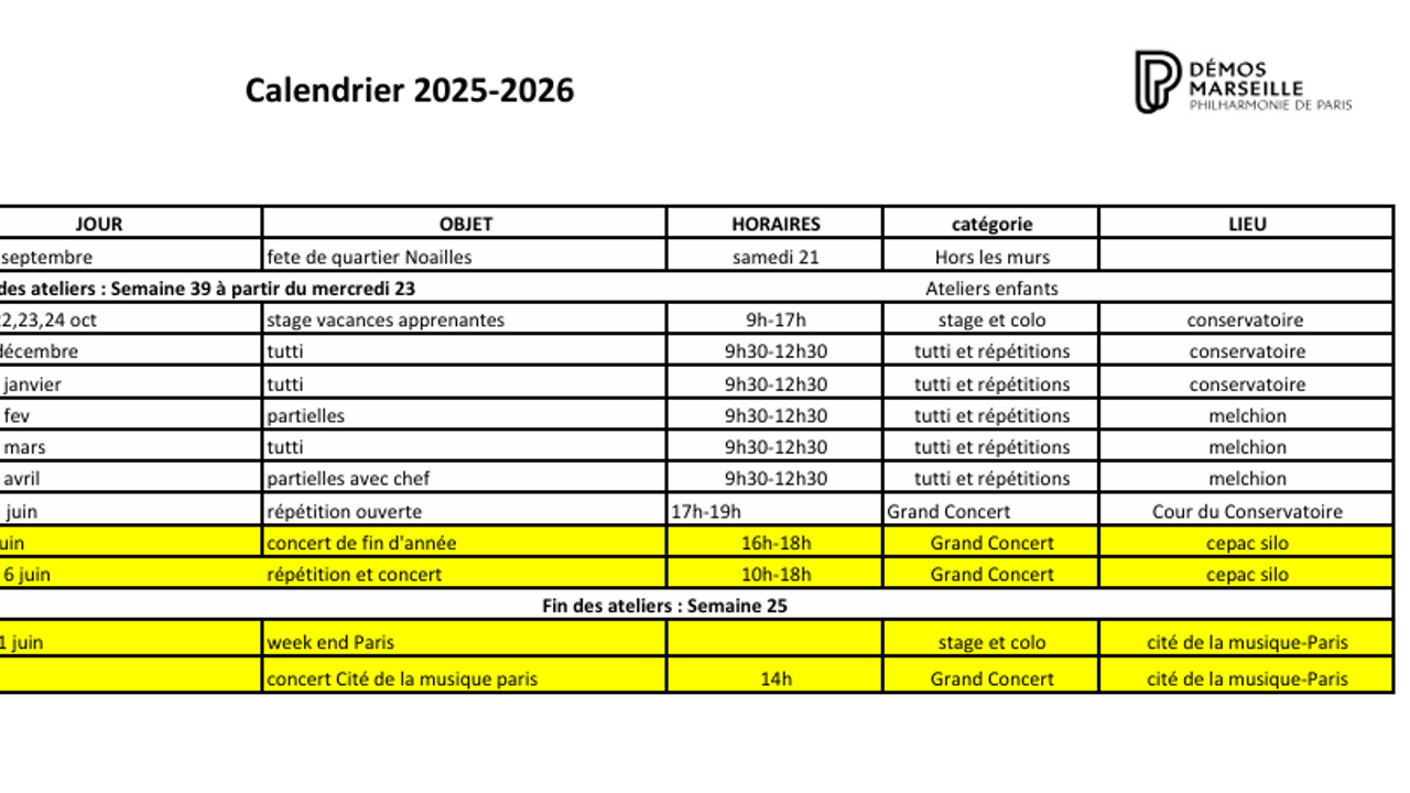 Retrouvez toutes les dates et les horaires de nos événements de septembre 2025 à juin 2026