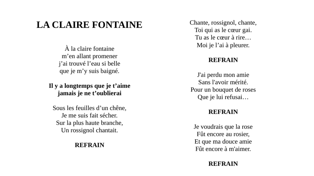 Oeuvre originelle : « À la claire fontaine »,